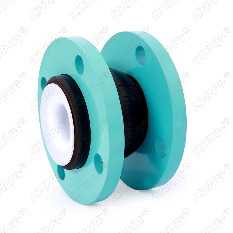 KXT型DN40~600mm可曲撓PTFE/襯四氟可曲撓橡膠軟接頭是在一般橡膠接頭或者三元乙丙高耐磨橡膠接頭的基礎(chǔ)上在內(nèi)部增PTEE.TEFLONJ聚四氟乙烯涂層,涂層主要為白色,能有效保護橡膠接頭不被腐蝕介質(zhì)侵蝕比如強酸、強堿或是高溫油料。聚四氟乙烯涂層能有效的附著在管道內(nèi)壁上,防止收到介質(zhì)沖刷或者管道拉伸收縮產(chǎn)生脫離。襯四氟可曲撓橡膠軟接頭膠質(zhì)不含再生膠,用天然、氯丁復(fù)合橡膠,可以過水、蒸汽、弱酸堿等介質(zhì),杜絕球體冒汗現(xiàn)象,使用壽命延長,產(chǎn)品生命周期為5--10年。(如下圖)