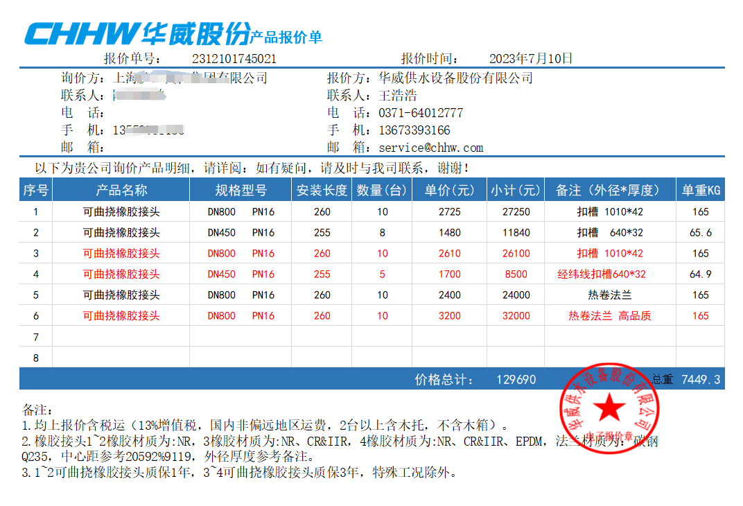 華威在詢價(jià)時(shí)會(huì)標(biāo)注產(chǎn)品重量,便于出口,質(zhì)量審查