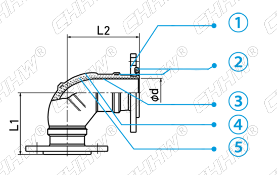 CHHW華威牌(工程系列)新型氣吹90°可曲撓橡膠彎頭-特點